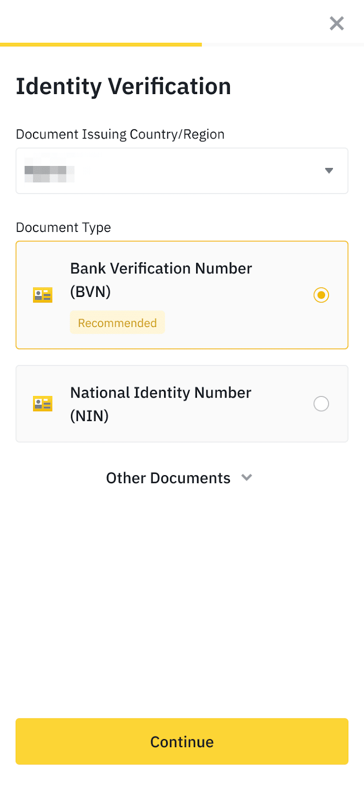 5. 点击【继续】,选择证件类型和签发您的文件的国家或地区。