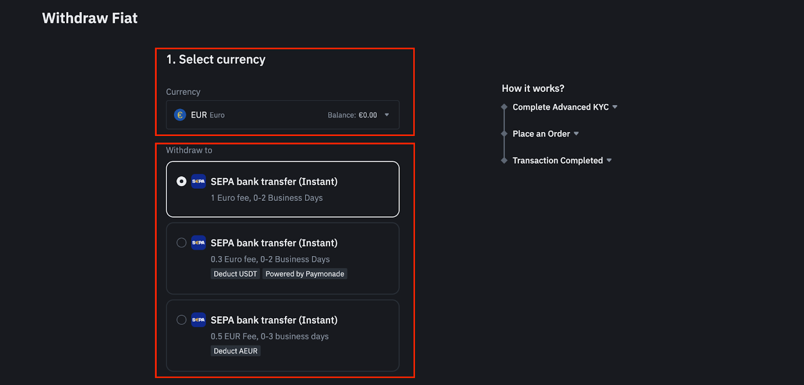 3. 选择您希望提取的法币(如 USD、EUR)。